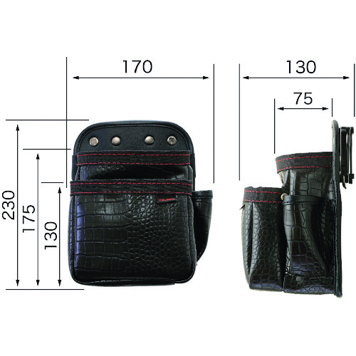 腰袋はベルトからの浮きを防止するサイドクリップ付(裏面)