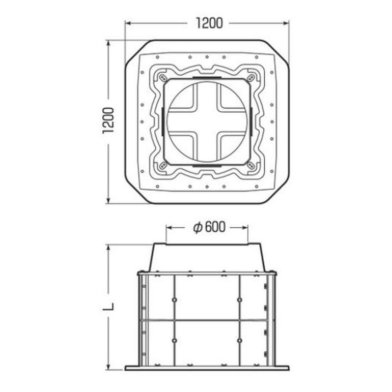 底面のツバが湿地帯への埋設時にハンドホールの浮上防止になります。