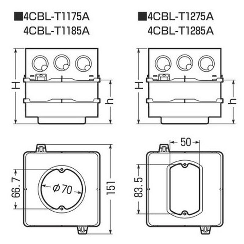 4CBL-T□A 四角PCボックス(鉄塗代カバー付)
