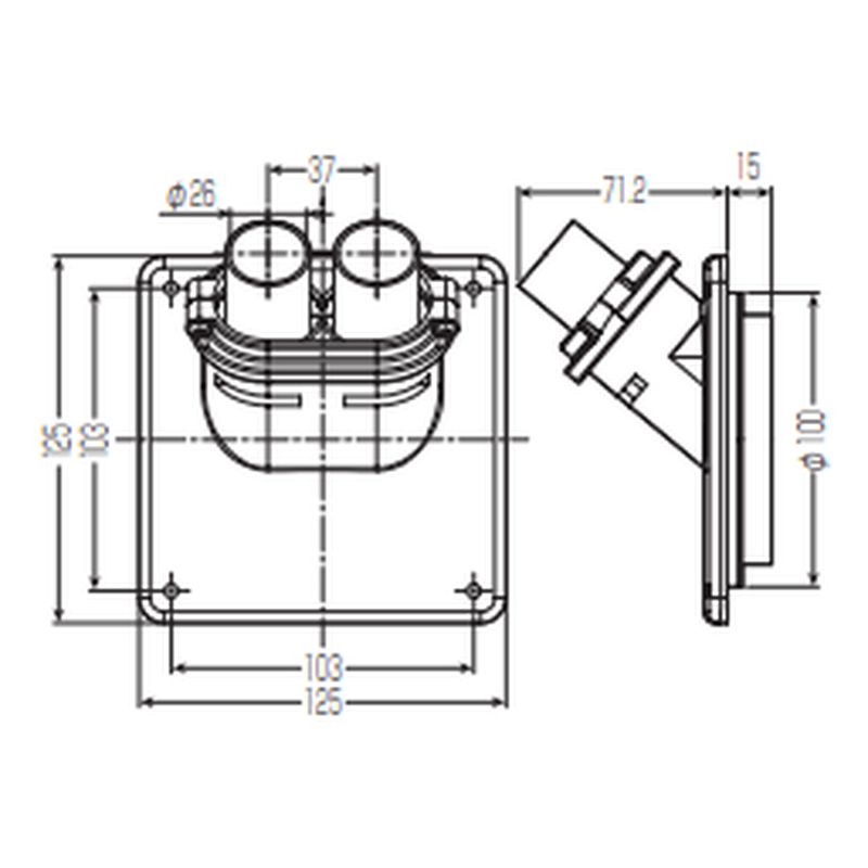 給水、給湯、追い焚き配管を屋外の壁掛け型給湯器から引き込む場合に使用します。