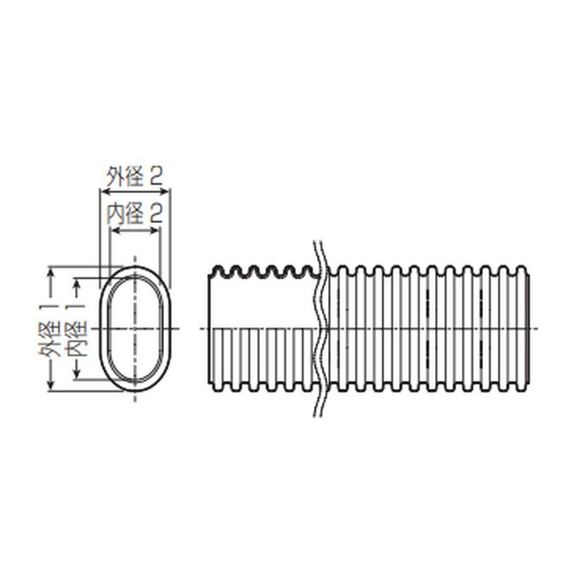 樹脂管のペアを通管させるための最適の強度(圧縮復元性・屈曲弾力性)を持った専用のダ円サヤ管で、通管の妨げとなる不陸、横ブレが起きにくい構造にしてあります。