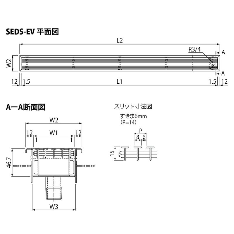 SEDS-EV-N 排水ユニット たて引き 端部排水 ステンレス製 ノンスリップタイプ