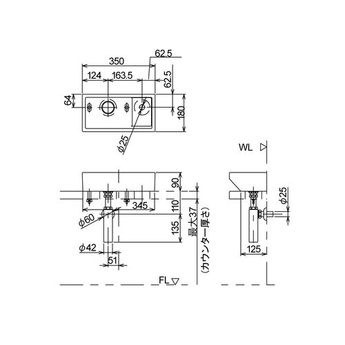 リラインス RW104B 狭小スペース手洗器(ボトルトラップ付)