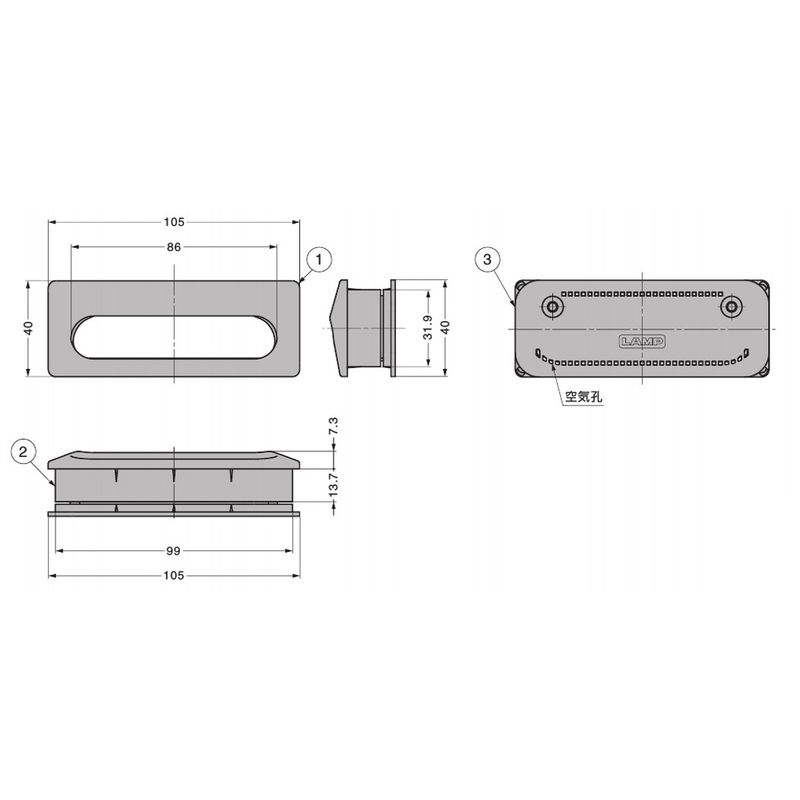 UTA-105 ステンレス鋼製 空気孔付き埋込取手