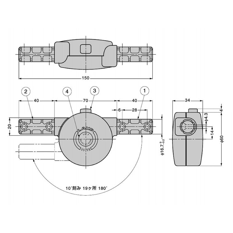 押しボタンを押すとロックが解除され、10°毎に180°まで角度調節が可能です。