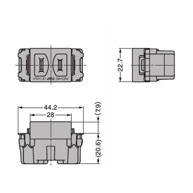 コンセントカバー・プレートに取り付けできる埋込コンセントです。
