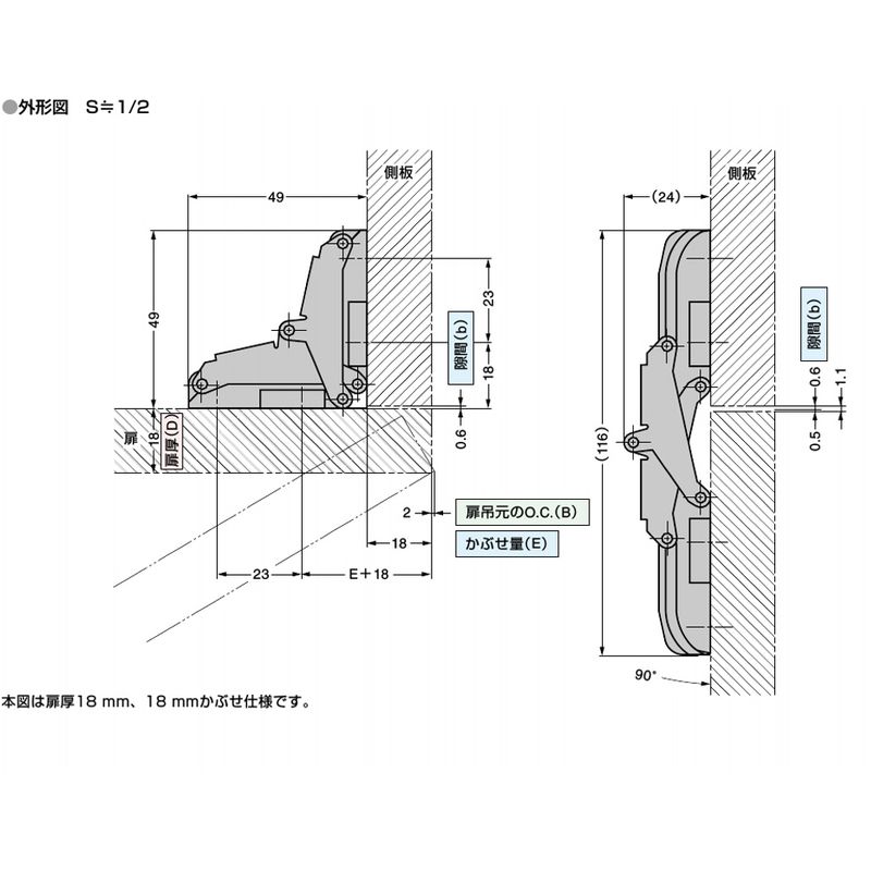 かぶせ扉・インセット扉の両方に使用できる面付丁番です。