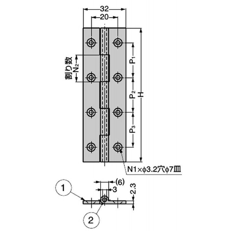 引抜き材を使用しており、軸の外径が小さい蝶番です。
