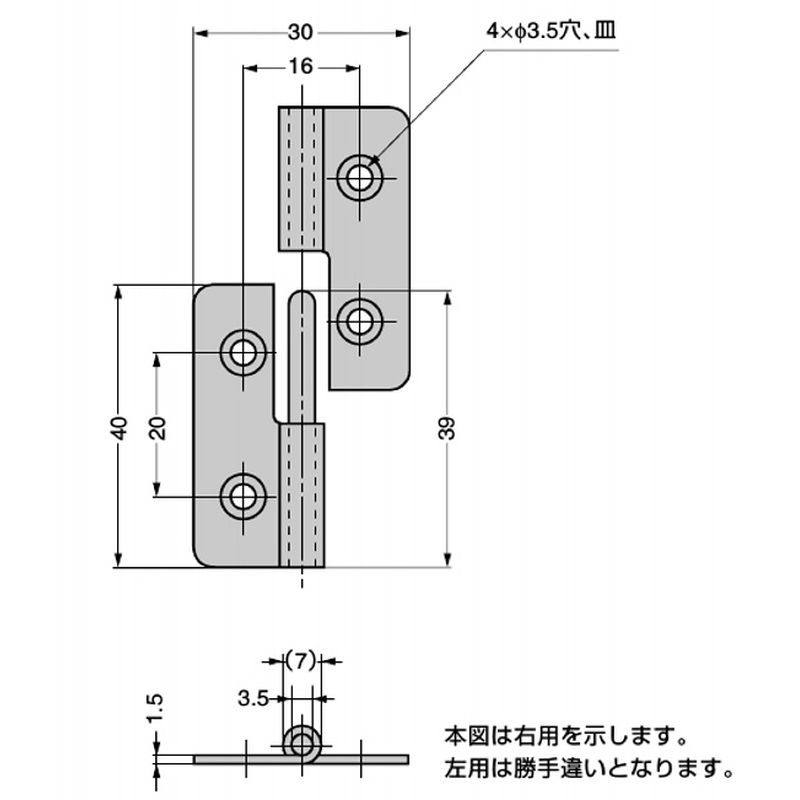 取付面は皿ねじ・リベットの逃げ加工を行ってください。
