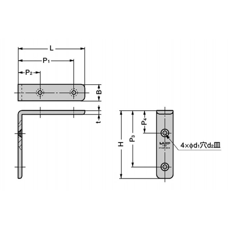 ステンレス鋼製なので錆に強く、医療関係、船舶、バスルーム、キッチンのほか、さまざまな場所での補強金具、間仕切りパネルのブラケットとしてご使用いただけます。