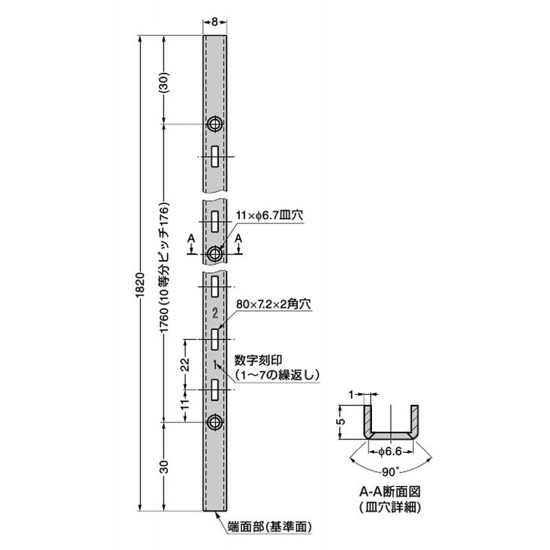 幅がわずか8mmのスリムで耐荷重が大きい棚柱です。