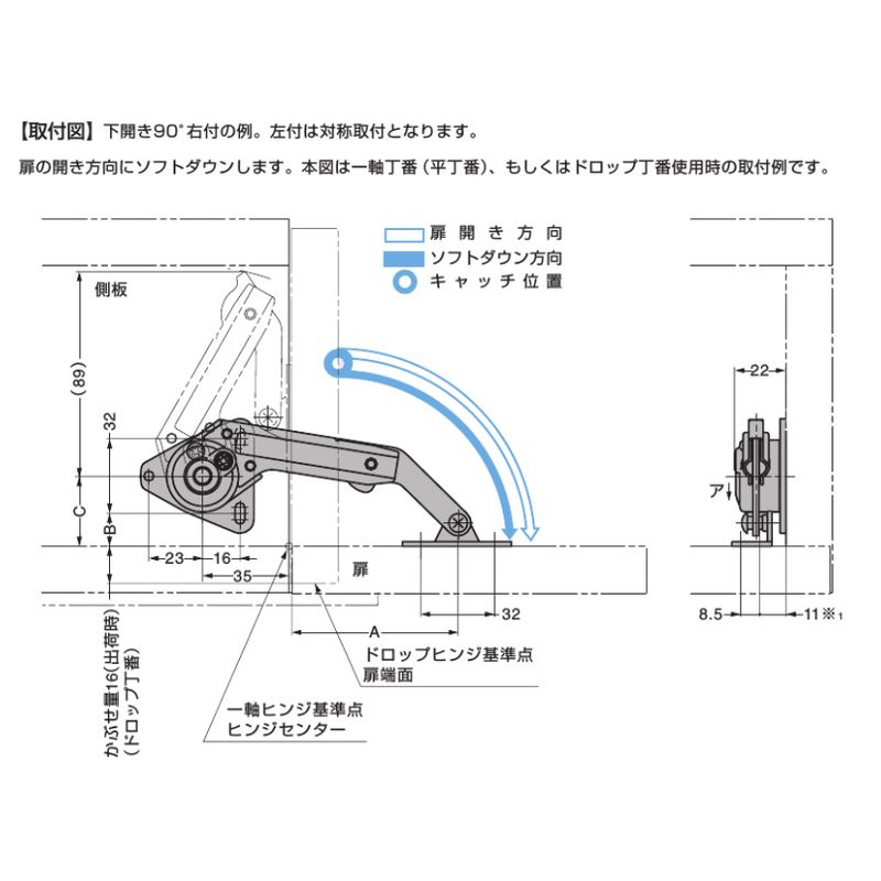 木扉:ドロップ丁番SDH-001型、ドロップ丁番SDH-P型、一軸丁番
