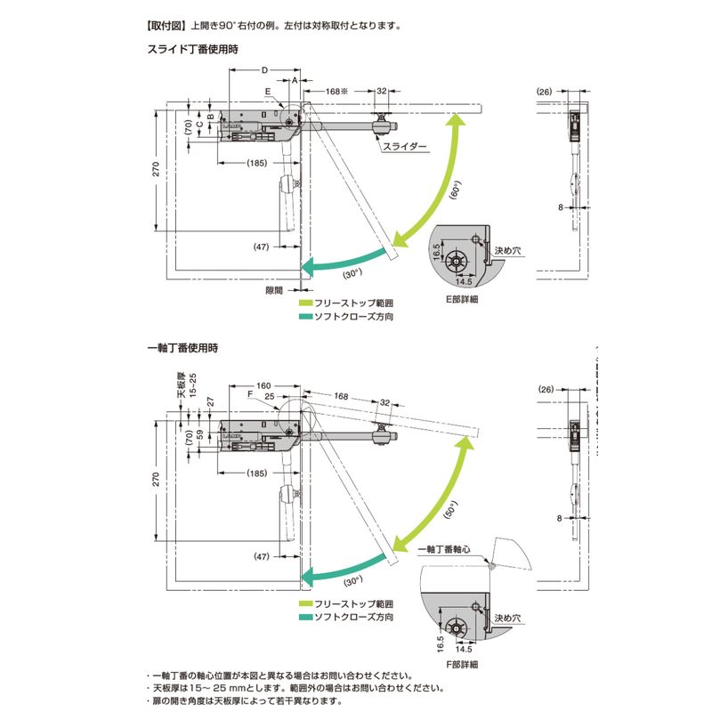 吊元丁番は一軸丁番(平丁番)、またはスライド丁番オリンピアシリーズ(キャッチなし)をご使用ください。