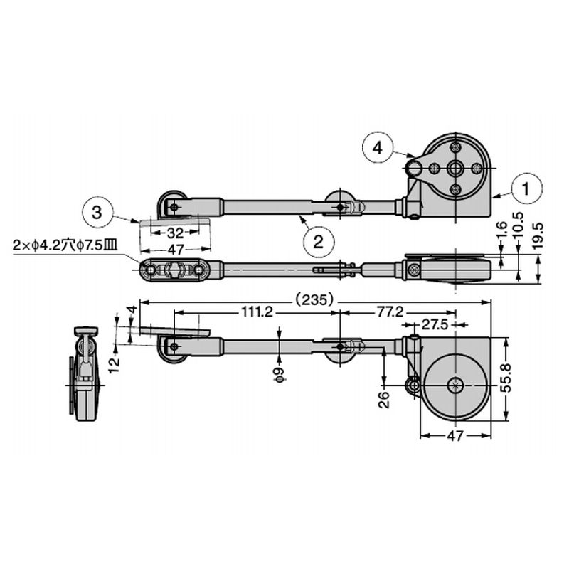 ラプコン機構により、上開き扉がゆっくりと静かに閉まるステーです。