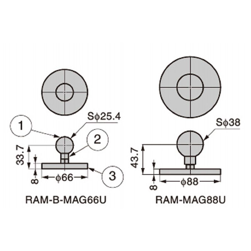 RAM RAMマウンティングシステム マグネット座付ボール円座