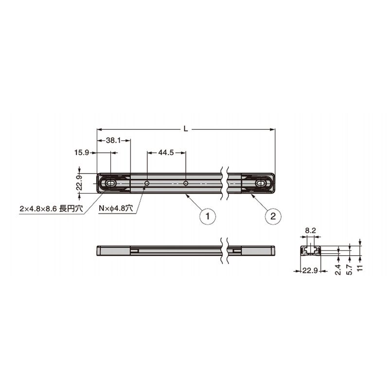 RAM本体(サイズB、C)と、別売のレール台座用ボールを組み合わせて使用します。