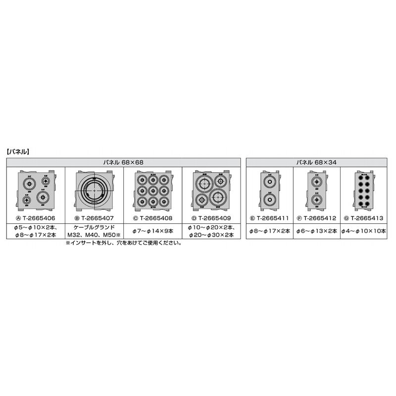 他の防水・防塵グロメットシリーズを取り付けできます。例えば、ホールドタイプを付ければストレインリリーフ機能を付加できます。