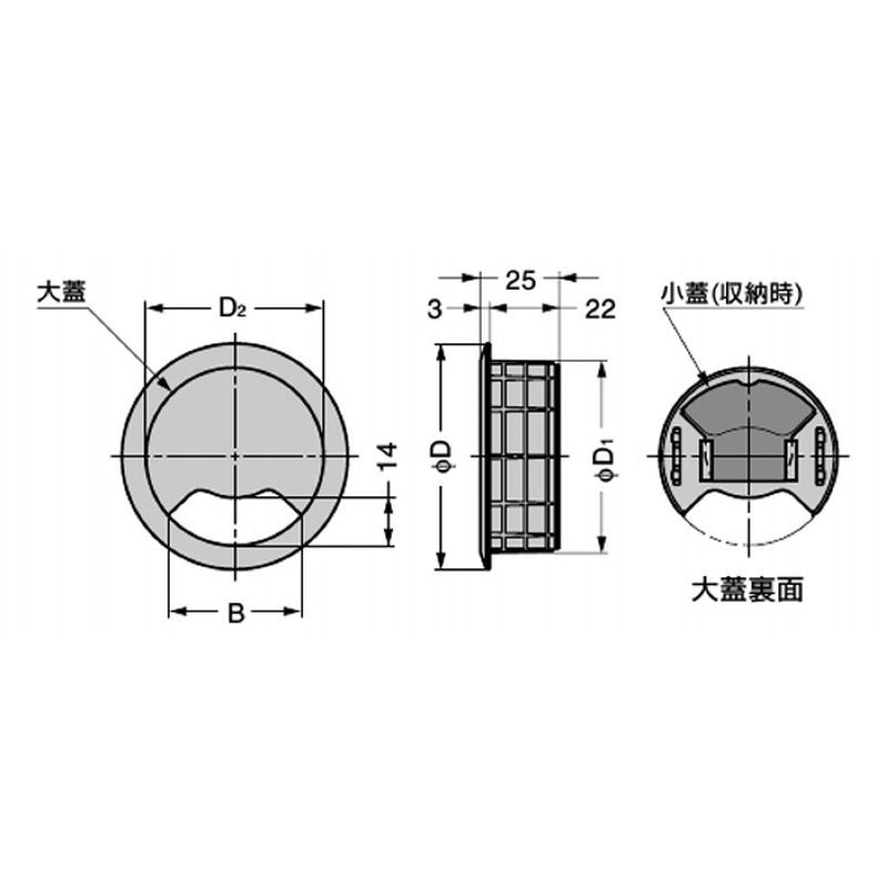 細いケーブルに対応した小蓋付きです。外した小蓋は大蓋の裏面に収納できます。