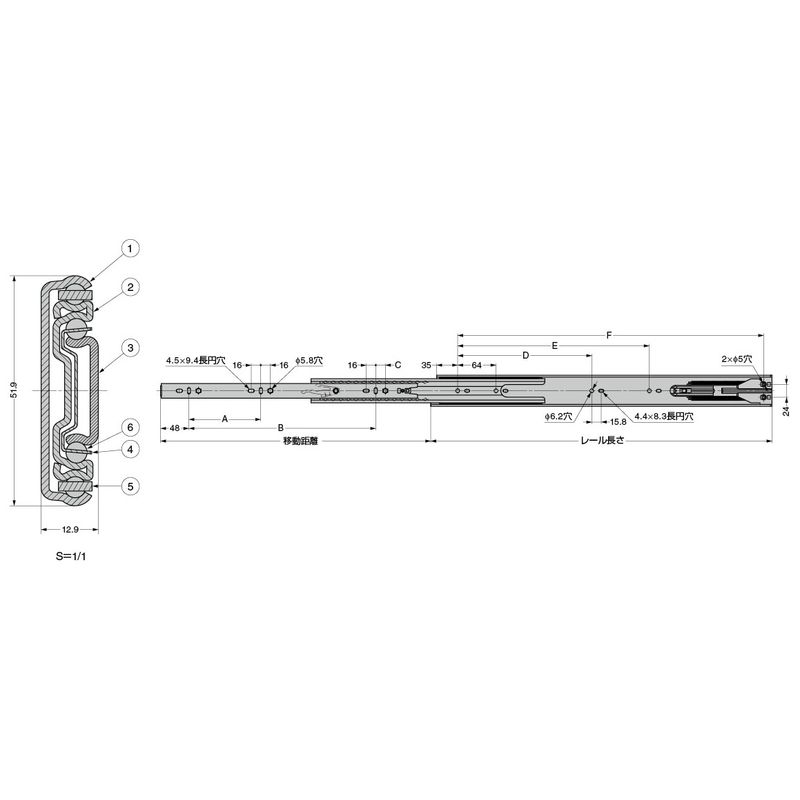 セルフ&ソフトクロージング機構が作動する位置はレール全閉時より50mm手前です。