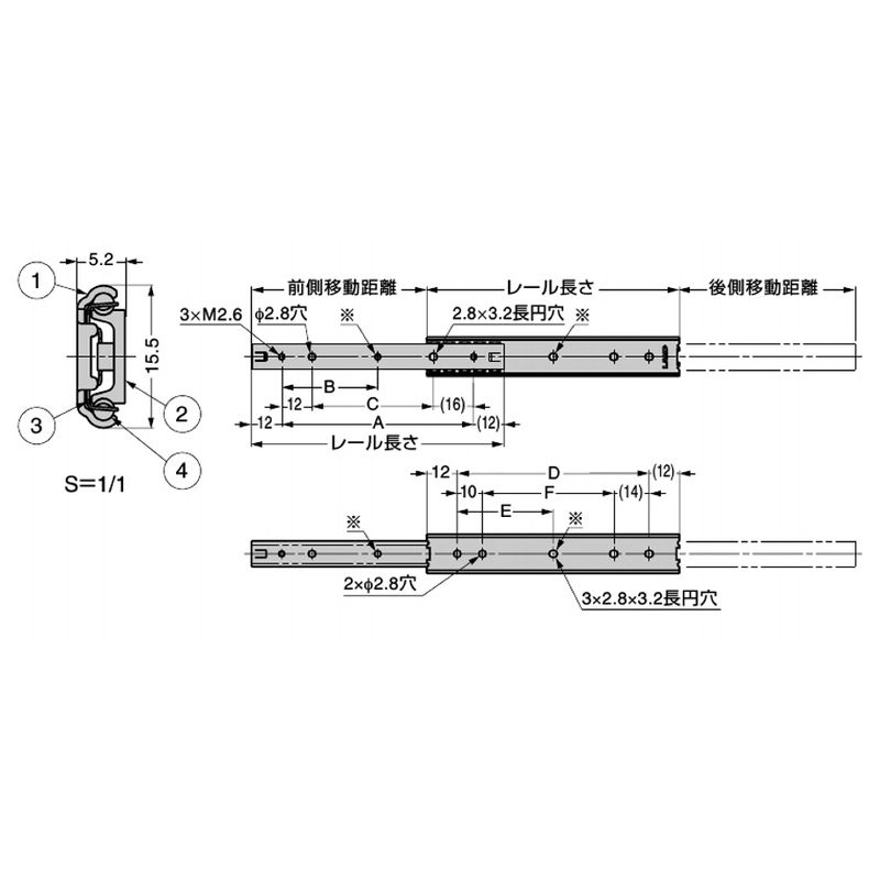 SCRW2-15S オールステンレス鋼製ミニスライドレール