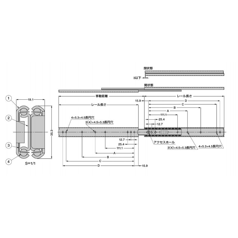 高さが35.3mmのステンレス鋼製スライドレールです。