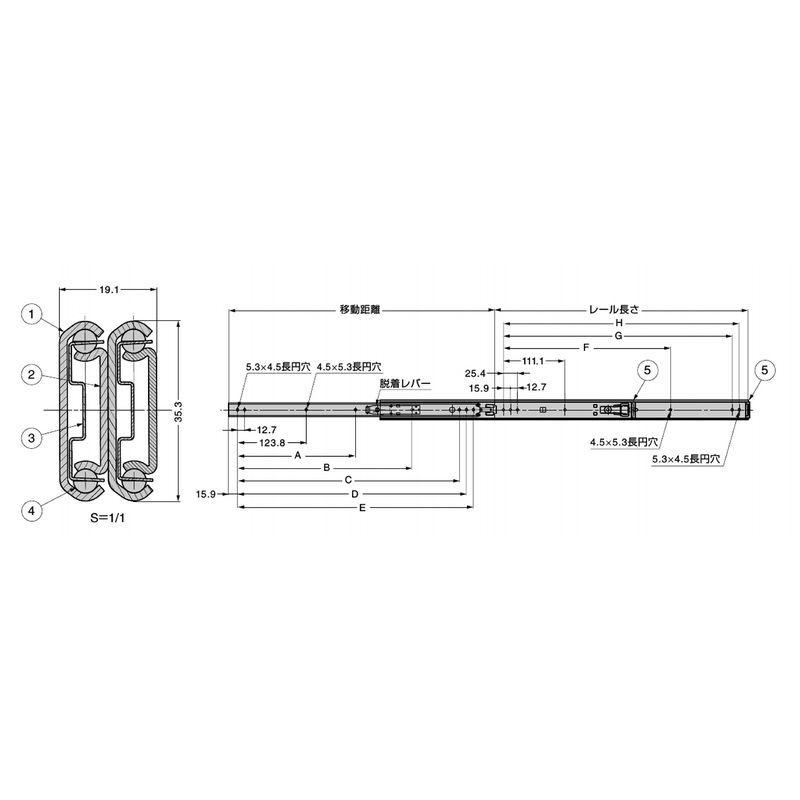 高さが35.3mmのステンレス鋼製スライドレールです。