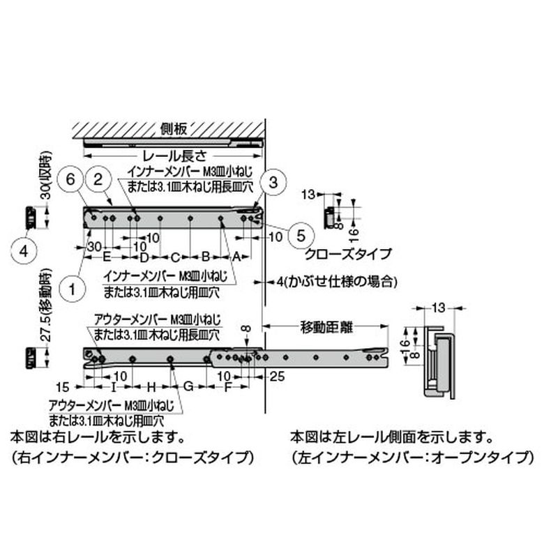 レール端部がR形状(傾斜状)のため、最後までしっかり閉じるクロージング機能付です。
