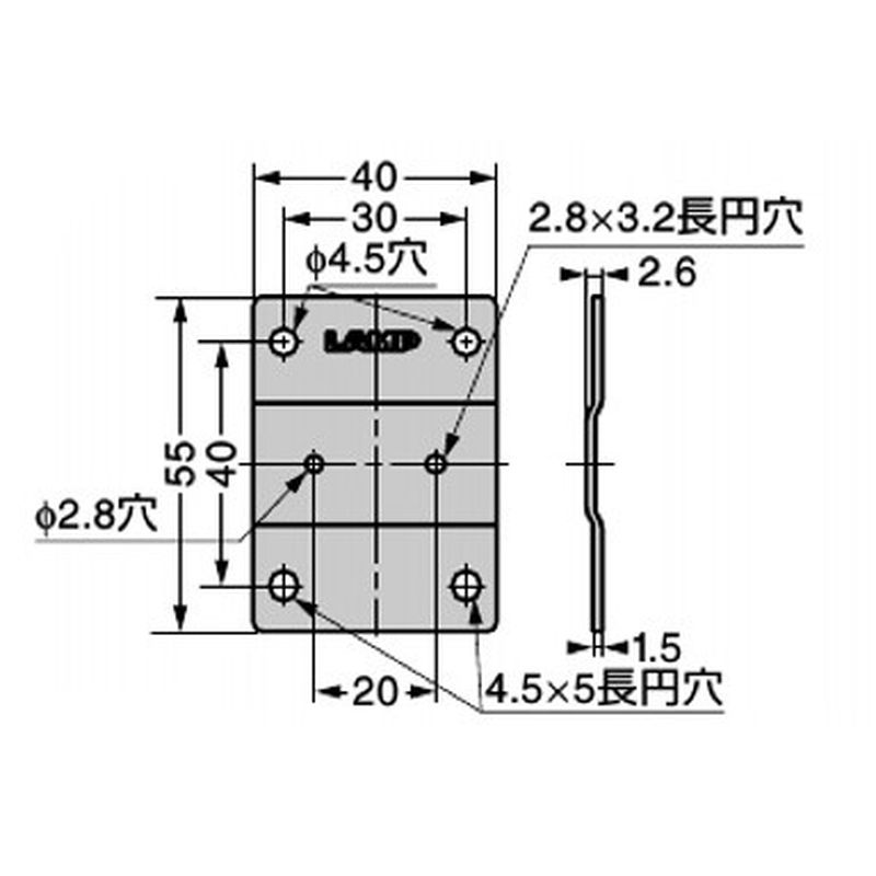 Φ4.5穴、4.5×5長円穴が予めあいています。【
