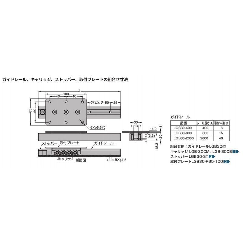 LGB30-P65-100 リニアローラーガイドレール用取付プレート