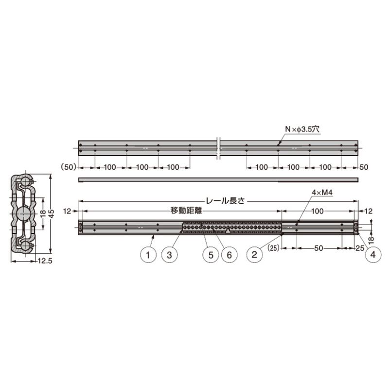 TSSL ステンレス鋼製 リニア型多目的スライドレール
