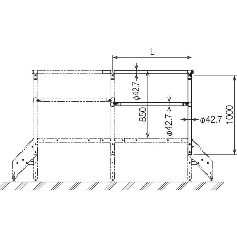 歩廊架台本体を床面や基礎側面へアンカーボルトで固定するなどの転倒防止対策を施してください。転倒によりケガの恐れがあります。