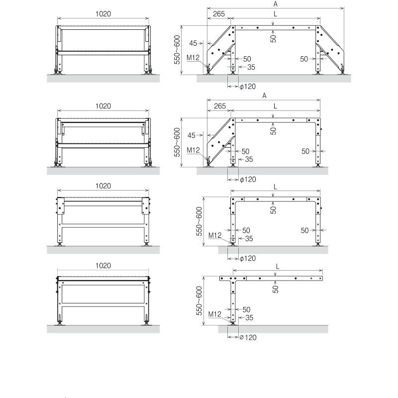 STP55-100 組立式歩廊架台 幅1020mmタイプ 2段ステップ