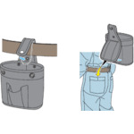 ベルトに通してスナップでロックの「ベルト吊り」と、背面のパッドをズボンのポケットに差し込むだけの「ポケットイン」のクイック2Way装着のミニ腰袋です。