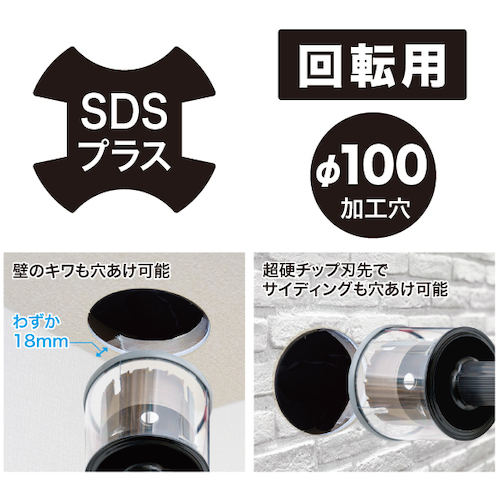 石こうボード、ジプトン、プラスターボード、フレキシブルボード、金属板(アルミスパンドレル・ガルバリウム鋼板)、サイディング(窯業系・金属系)、ケイカル板、コンパネ板等の丸穴加工作業に。