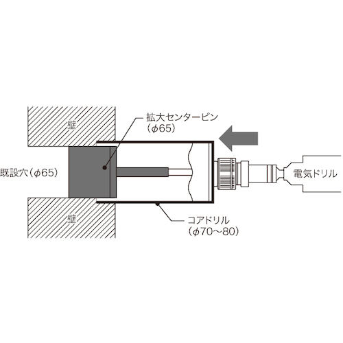 コアドリルに取り付けて、既設のφ65穴を拡大