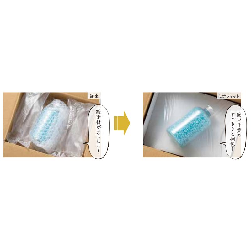緩衝材を切ったり詰めたりする作業がなくなり、作業時間の大幅な短縮や、作業効率の向上につながります。