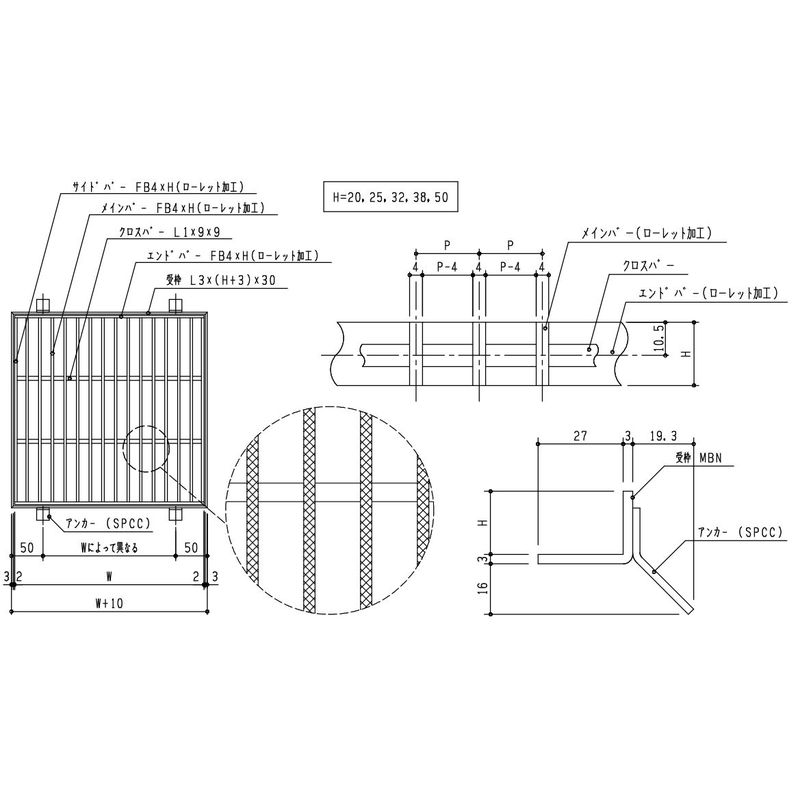 伊藤鉄工 SGBR30-50 ステンレス製ます蓋 フラットバー4mmローレットタイプ P20