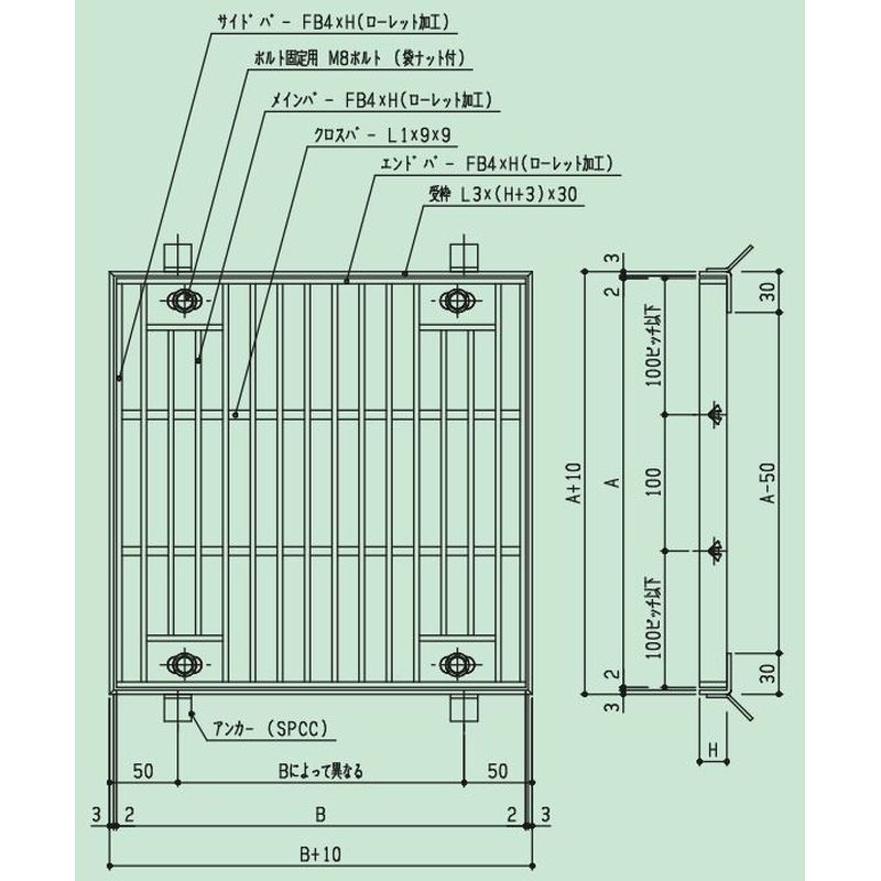 伊藤鉄工 SGBRL25-20 SUS ます蓋 フラットバー4mmローレットタイプ ボルト固定 P10