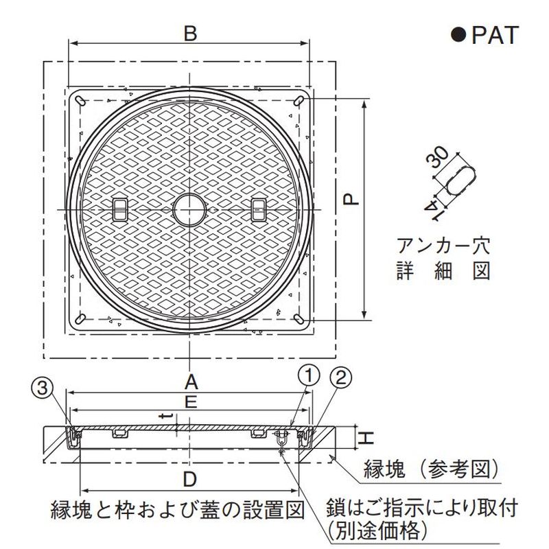 伊藤鉄工 MCDGCD CD桝縁塊用防臭重耐型マンホールふた【雑排】鎖付