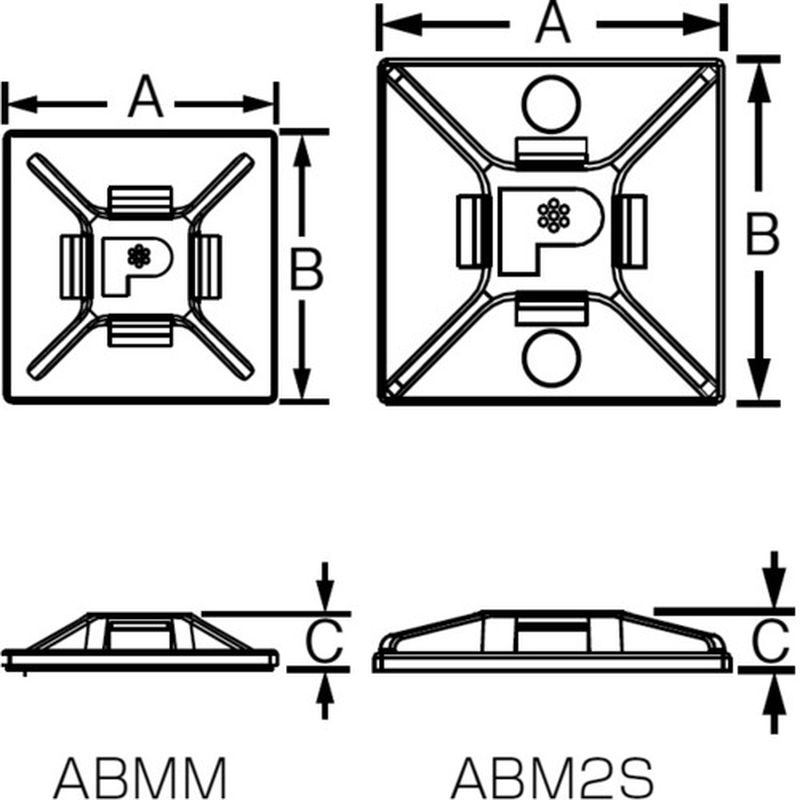 パンドウィット ABMM-AT-C0 マウントベース アクリル系粘着テープ 耐候性黒 100個入
