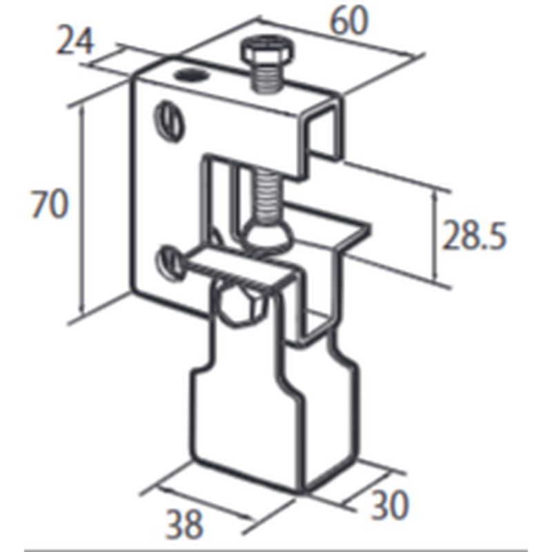 各種形鋼に穴を開けることなく吊りボルトを吊り下ろすための金具です。