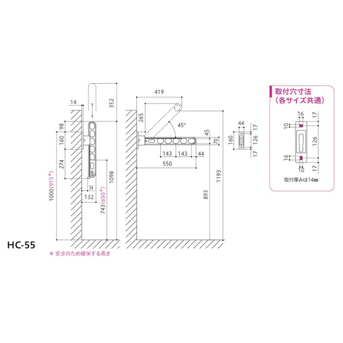 川口技研 HC-55-DB 屋外用ホスクリーン腰壁用物干し (000417)