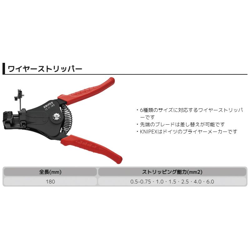 クニペックス(KNIPEX) 1221-180 ワイヤーストリッパー (SB)