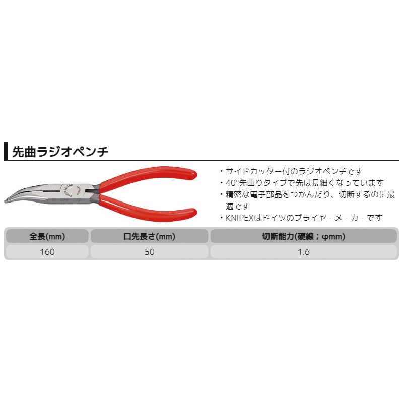 クニペックス(KNIPEX) 2521-160 40゜先曲ラジオペンチ (SB)