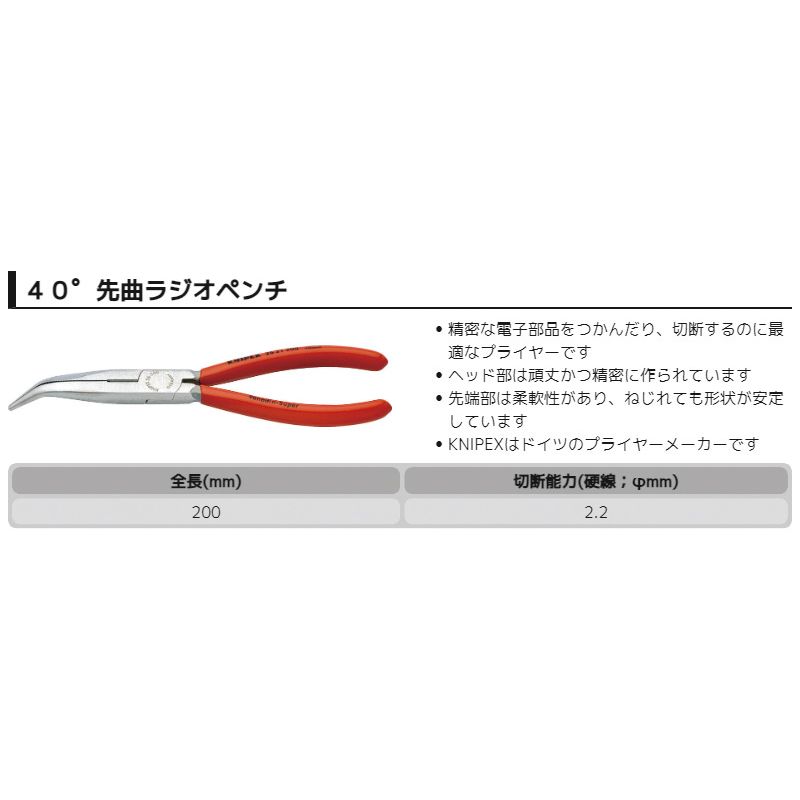 クニペックス(KNIPEX) 2621-200 40゜先曲ラジオペンチ (SB)