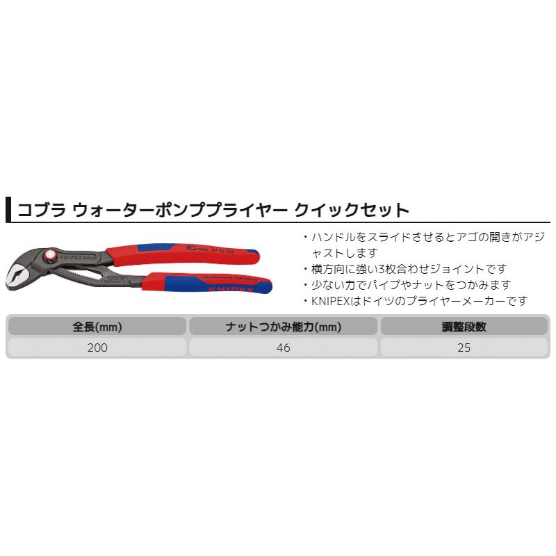 クニペックス(KNIPEX) 8722-250 コブラ クイックセット(SB)