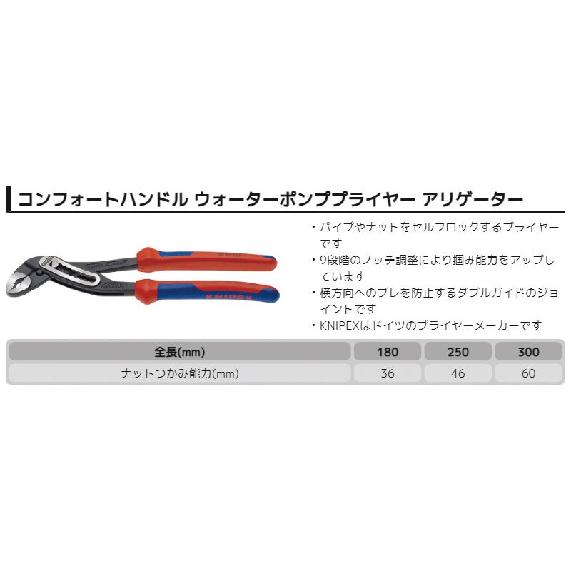 クニペックス(KNIPEX) 8802-250 アリゲーター ウォーターポンププライヤー (SB)