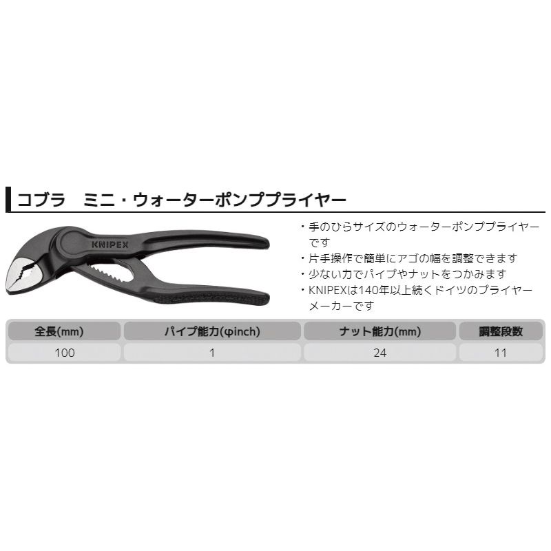 クニペックス(KNIPEX) 8700-100BK コブラ ウォーターポンププライヤー