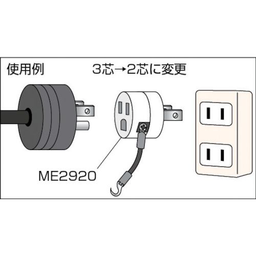 2極コンセントに使いますと2極接地形プラグが使用できます。(ME2985、ME2920)