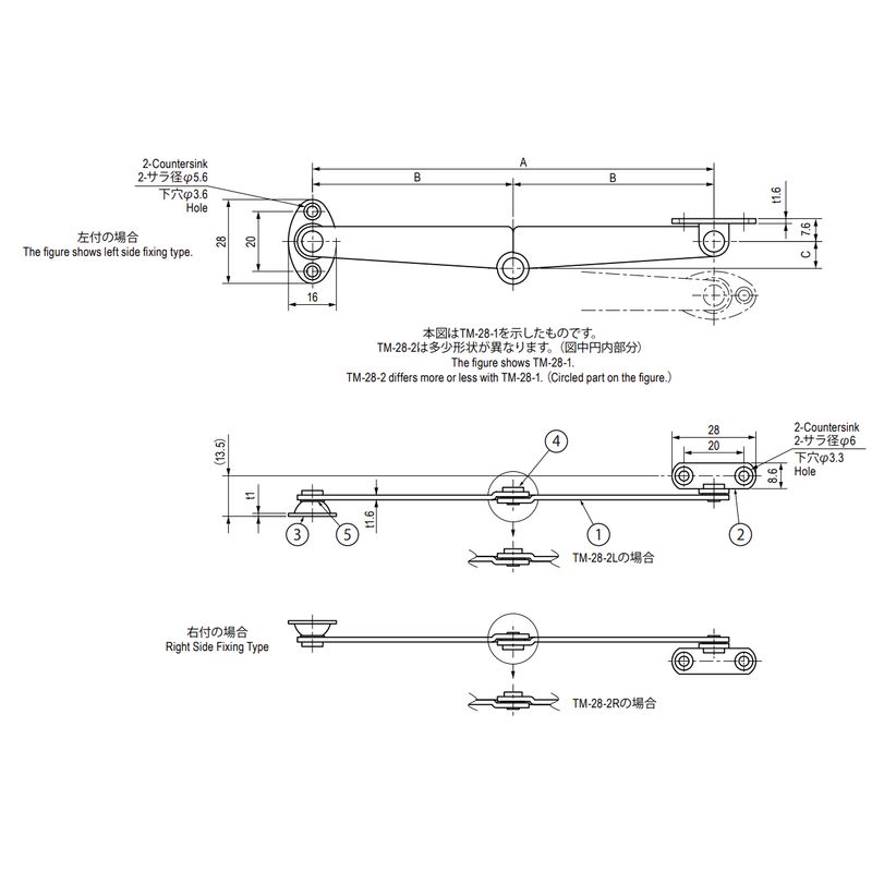サラねじ又はサラリベットで取り付ける場合は、取付側に面取り加工を施してください。